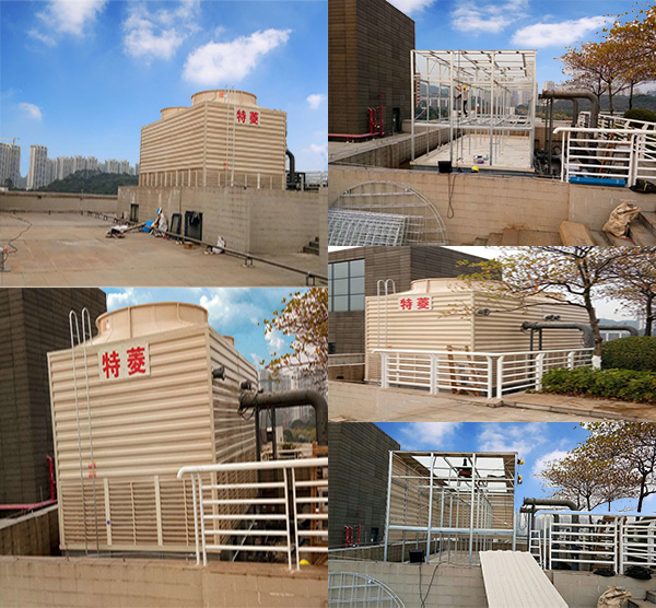 惠州東江環保橫流方形冷卻塔安裝 廣東特菱空調(http://m.pornks.com)方形橫流式玻璃鋼冷卻塔結構特點: (1)擋板:玻璃鋼材質,表面光滑美觀,耐腐蝕,防老化。 (2)填料:改性聚氯